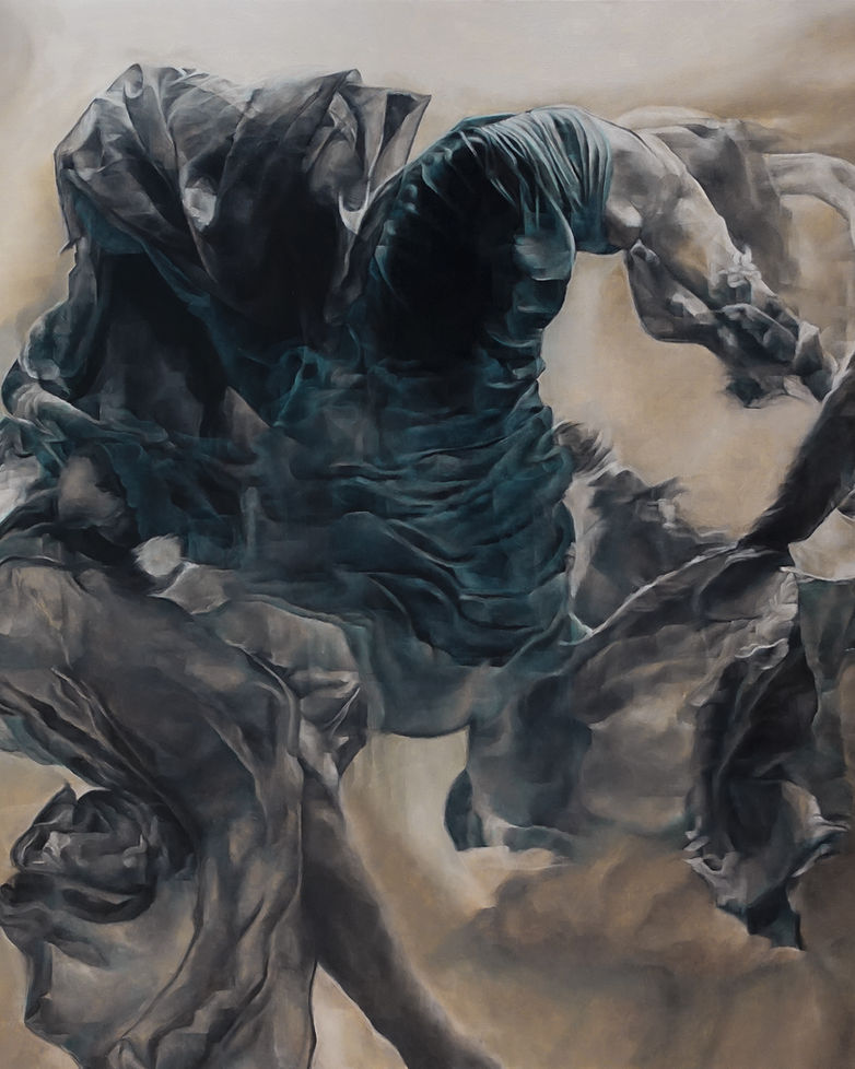 Mi inspiración nace del diálogo entre la fuerza de la mujer, la seducción de la mitología y la delicadeza de las telas. En cada pincelada se entrelazan, se rozan y se funden, revelando la tensión sutil entre quietud y anhelo, entre lo que contengo y lo que libero."